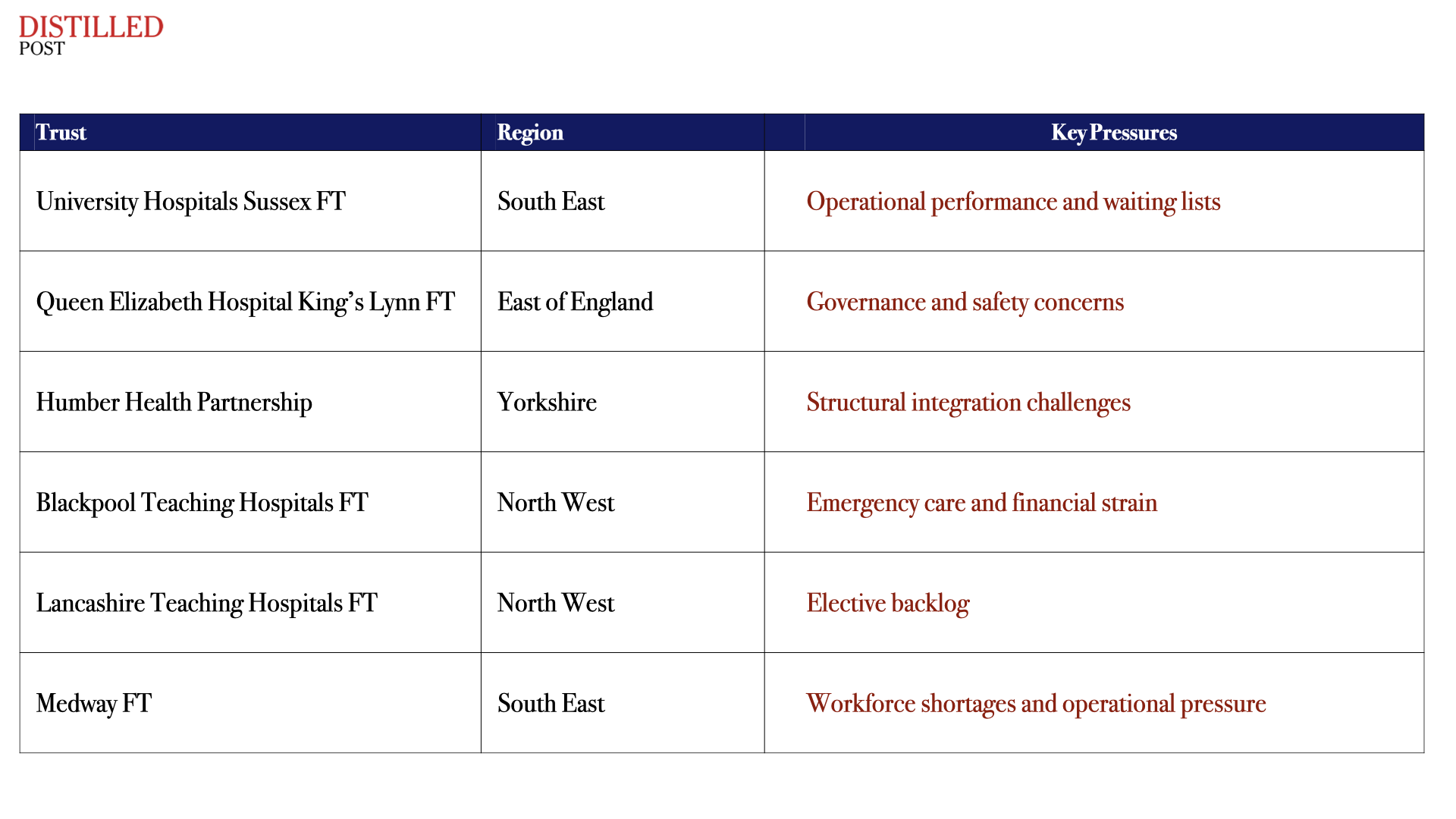 The process will not simply review performance metrics but will test whether the organisations possess the internal conditions required to deliver sustainable improvement. If NHSE determines that those foundations are weak, the programme may lead to leadership changes, tighter regulatory oversight or structural adjustments to how services are delivered across regional health systems. In effect, NHSE is asking a fundamental question about each provider.